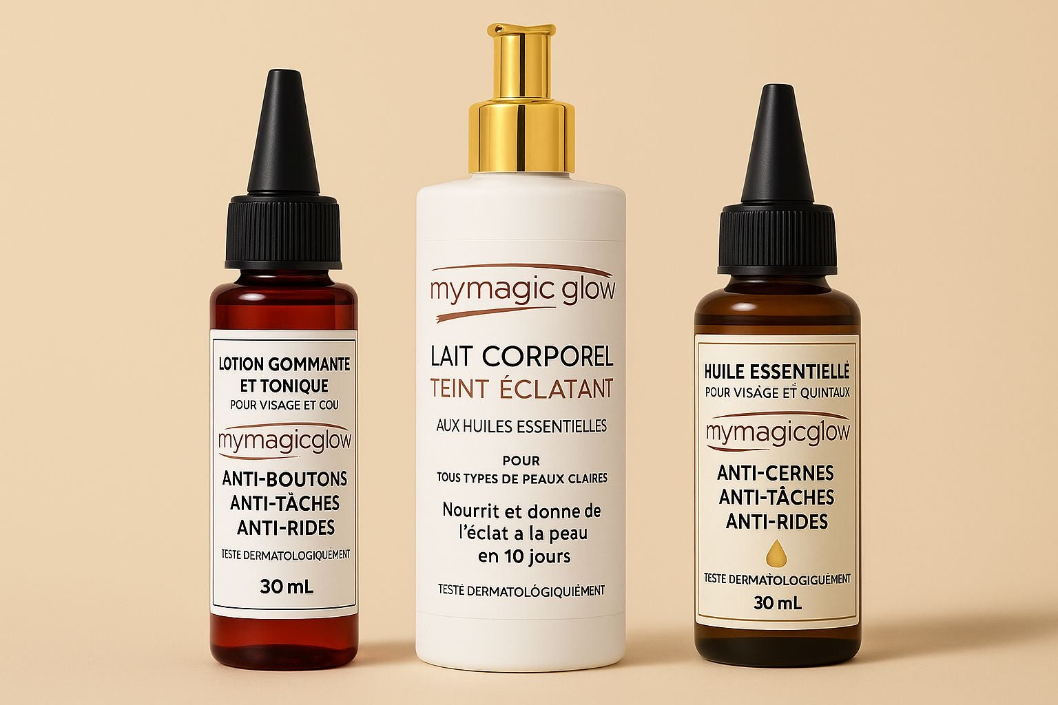 Avec My’MagicCream, dites adieu aux taches, rougeurs et imperfections. Enrichie en Vitamine C, beurre de karité et actifs hydratants puissants, cette crème révolutionnaire unifie, illumine et nourrit votre peau en...