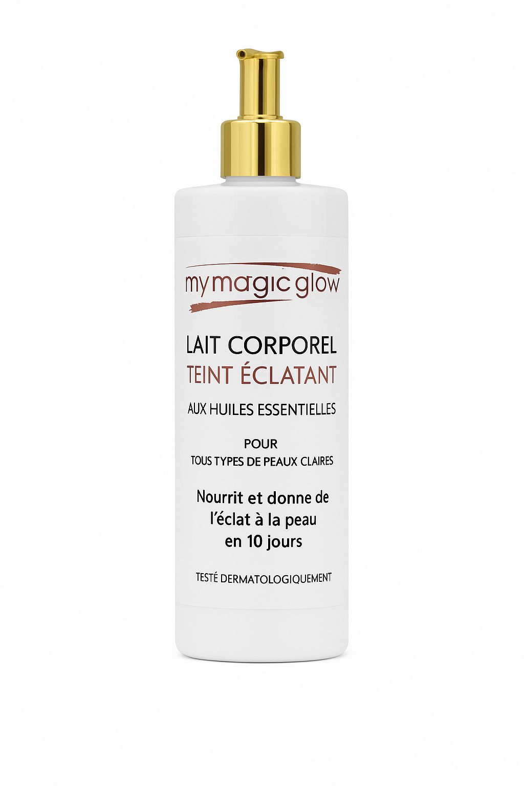 Le Lait Corporel Teint Éclatant My’MagicGlow, spécialement conçu pour les peaux claires, unifie et illumine le teint en douceur. Enrichi aux extraits de carotte, il favorise un éclat naturel tout en maintenant une hydratation optimale. Sa texture légère pénètre rapidement sans laisser de film gras, pour une peau douce, satinée et lumineuse dès les premiers jours d’utilisation. Résultats visibles dès 10 jours d’application régulière.